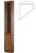 Узкий, высокий книжный шкаф, в котором можно хранить не только книги, но и любые бумаги, документацию. Именно для этого предусмотрена нижняя часть шкафа, которая оборудована полками, которые закрыты сплошной деревянной дверцей. Верхняя часть имеет четыре полки и закрывается стеклянной дверью. Дополняет сдержанный дизайн шкафа для книг стильная и удобная фурнитура.